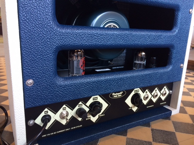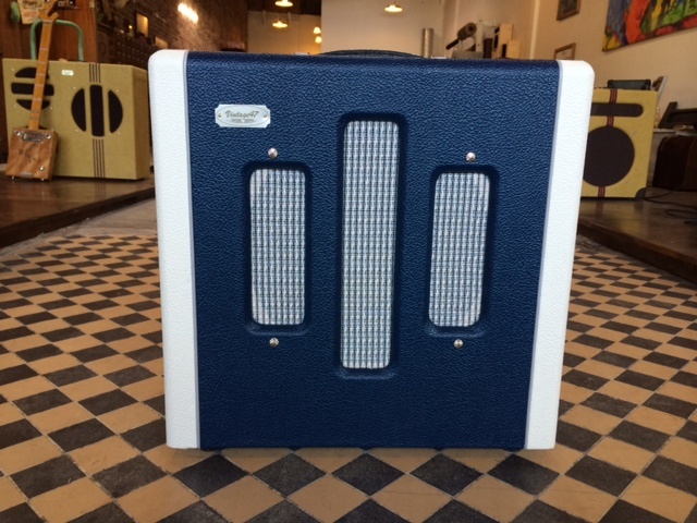 Blue and cream (as shown) is our stock color combination. Also available in other tolex colors for no extra charge. Please email for availability and lead times.
